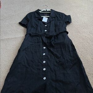 100% European Linen Button Front Dress