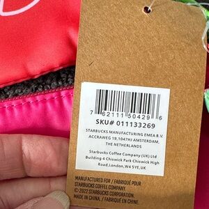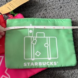 Vibrant Starbucks pouches in red, pink, and green. Perfect for travel essentials. Set of 3