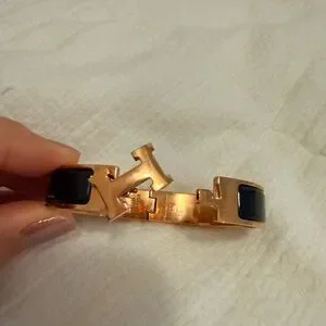Black clic clac bangle with H buckle.