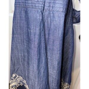 eShakti Dress Small 6 Embroidered Fit and Flare Cotton Womens Pockets Denim look