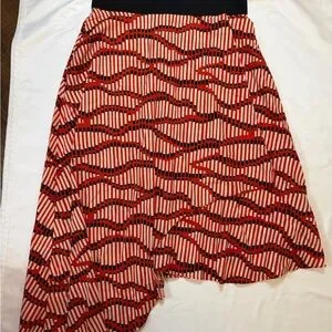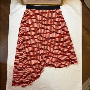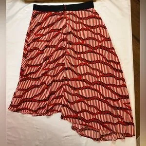 -Features: Topshop size 6 red Asymmetrical midi skirt. No stains or holes.
