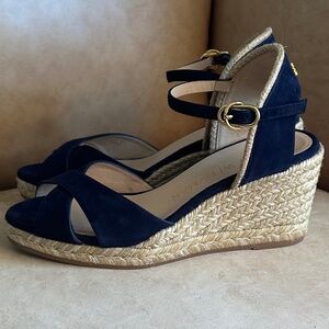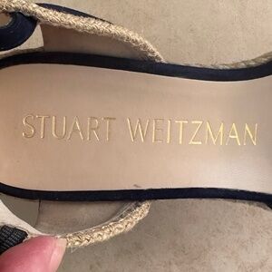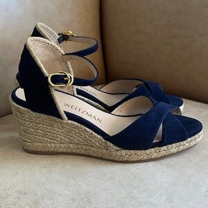 Stuart Weitzman Mirela II Espadrille Wedge Sandal Navy Suede/Natural 7.5C Casual