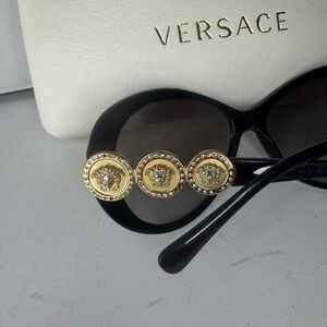 Versace Medusa Sunglasses Black Frame Gold Medusa With Small Clear Crystals.