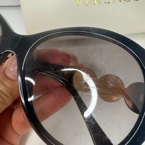 Versace Medusa Sunglasses Black Frame With Gold Medusa Emblem With Clear Crystals Sunglasses With Scratches.