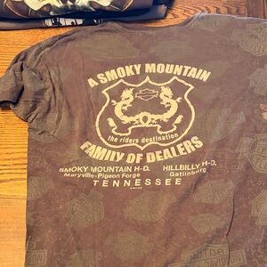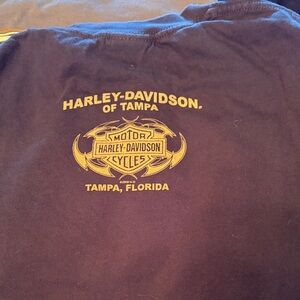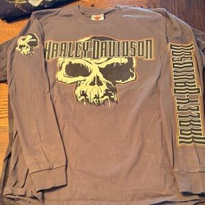 4 different authentic long sleeve Harley-Davidson t-shirts. Features skulls and bold logos. Ideal for motorcycle enthusiasts. All black or gray and size large or extra large. I do have one T-shirt available all smoke free home