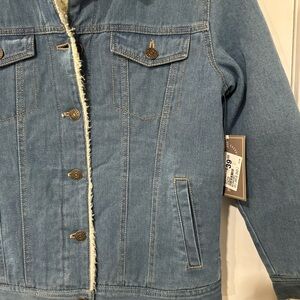 Stylish and cozy, this blue denim jacket features a soft sherpa collar for added warmth. Perfect for any casual outing.