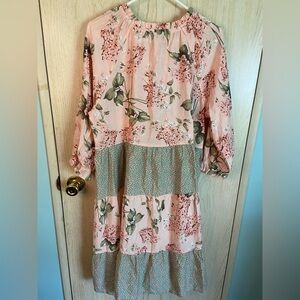 GiGiO Hydrangea Tiered Floral Cottagecore Patchwork Dress Sz Large