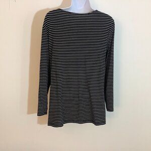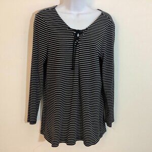 Slip On Top Old Navy V Neck Long Sleeve Black / White Stripe XL Knit Stretch