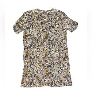 Chic Velvet dress with a vibrant paisley pattern. Features short sleeves and a colorful design.