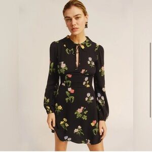 Reformation Will Dress Night Bloom Floral Black Keyhole Peter Pan Collar