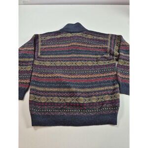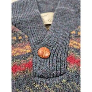 Vintage St Michael Sweater Mens Large Blue Wool Fair Isle Shawl Collar Pullover