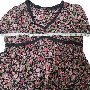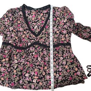 Patrons of Peace Long Sleeve Babydoll Boho Blouse Black Floral Medium