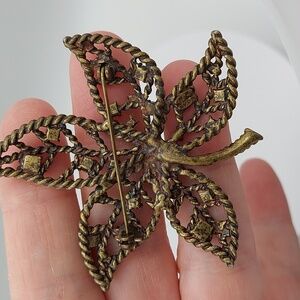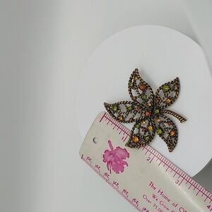 This exquisite leaf brooch features sparkling multicolor stones set in a beautifully detailed design.