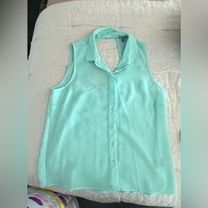 Women’s sleeveless mint green top. Sheer material