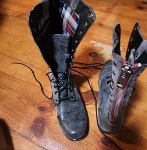 Stylish gray combat boots with lace-up front. Perfect for a bold look.