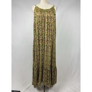 By Anthropologie Maxi Dress Citron Green Pink Floral Paisley Print Large
