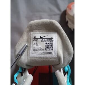 The Nike Air Max 270 React Sneakers in women's size UK 7.5 and US 10 are stylish athletic shoes perfect for active women. With a sleek sneaker design and the signature Nike Air Max comfort, these shoes are ideal for workouts or everyday wear. The model, Nike Air Max 270, features a breathable upper and cushioned sole for ultimate comfort and support. Use these sneakers to step up your athletic game or add a trendy touch to your casual wardrobe. Color: gray/white/orange.