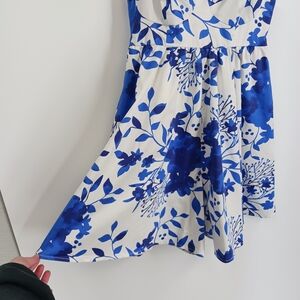 White with blue all over bold floral print