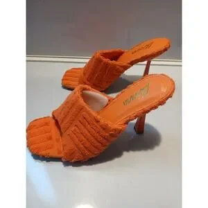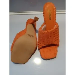 LIAYANA Orange Terry Cloth Open Toe Square Toe Heels Women Size 9