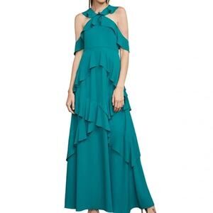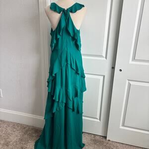 BCBG MAXAZRIA Green Audrianna Georgette Ruffled Halter Dress Gown Sz 12