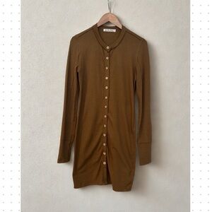 Cozy brown knit cardigan. Ideal for layering. Can be worn as a dress or cardi see pictures. Excellent combination worn once.