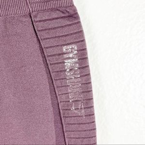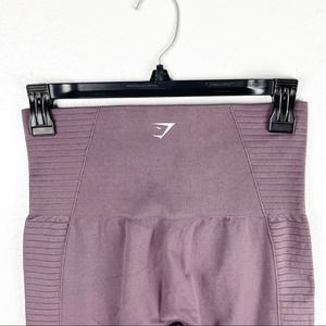 GYMSHARK Purple Plum Energy Seamless High Waisted Perforated Leggings. Showing minimal signs of wearing, light pilling, logo on leg is faded. Size and material tags have been removed, sizing based on measurements. Please verify measurements to assure proper fit. Gently worn pre-owned condition.