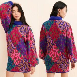 FARM Rio Mixed Leopard Pop Sweater Dress