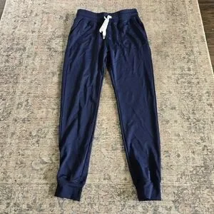 Zyia Active Cozy Jogger Pants Heathered Blue Black White Drawstrig Elastic Waist