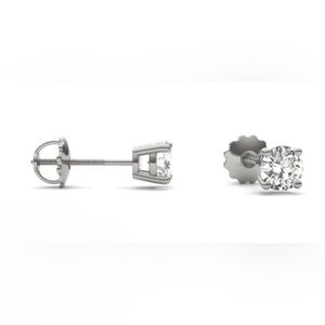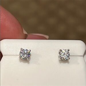 These elegant moissanite & silver stud earrings add a touch of sophistication to any outfit. Perfect for everyday wear or special occasions. Total carat weight is 1.0 (.50 each stud). Setting is in 925 Sterling silver with screw backs. Brand new