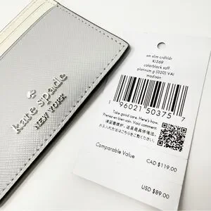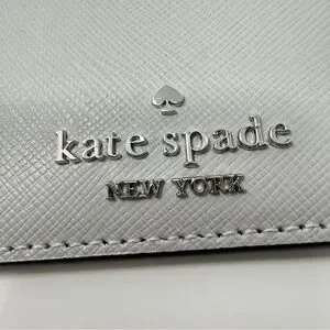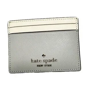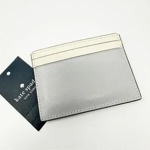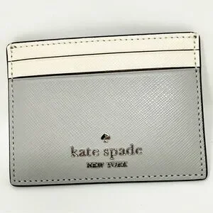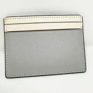 Chic color block card holder by Kate Spade. Features elegant gray and cream tones. Ideal for card organization.