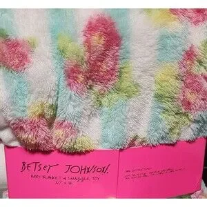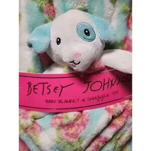 The Betsey Johnson Baby Blanket & Snuggle Toy is a colorful and charming set perfect for any baby's nursery. Made of easy-care and breathable polyester material, this 30" x 36" blanket features a floral theme, making it ideal for both baby boys and girls. The brand's signature whimsy and style are reflected in this adorable and practical addition to any baby's bedding collection. The set includes a cozy snuggle toy for added comfort and security. CLOTHING AND FABRIC ITEMS: All clothing and fabric items have been steam cleaned and/or washed.