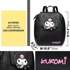 ⚡Women Teens Black Kuromi Mini PU Leather Adjustable Straps Kawaii Travel Bag