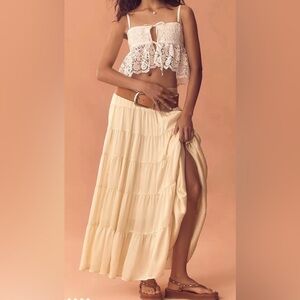 Anthropologie Tiered Petticoat Midi Maxi Skirt Elastic Waist Lined Yellow
