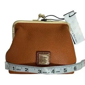 Dooney Bourke Kiss Lock Camel Brown Leather Coin Purse