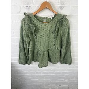 Anthropologie Eri + Ali Women's Victoria Eyelet Ruffle Blouse Top Green Size M