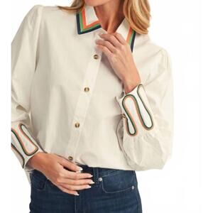 NEW JODIFL winslow embroidery accent button down blouse in ivory
