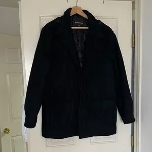 Sophisticated dark coat by Michael Kors. Features multiple pockets and a sleek design. Ideal for versatile wear.