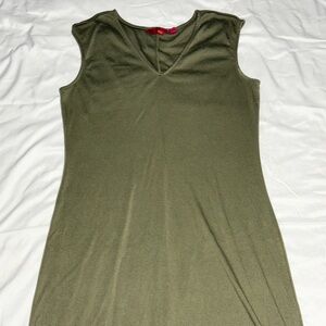 G.I.L.I. Olive Green Sleeveless Asymmetrical V-Neck Dress – Size M