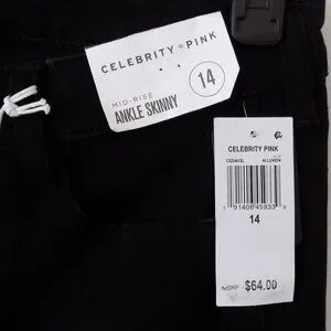 Celebrity Pink Alluvion Mid-Rise Ankle Skinny Jeans Size 14 Black Distressed