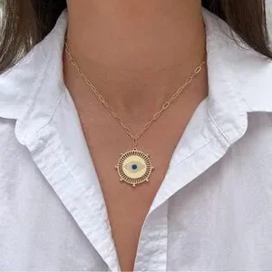 Jennifer Miller Evil Eye Medallion Goldtone Necklace
