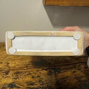 Elegant white ceramic vase featuring a unique geometric design. Perfect for modern decor. 7” tall x 7.25” wide x 2” deep! Pretty heavy vase!