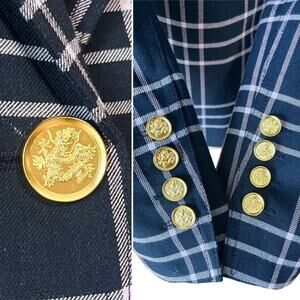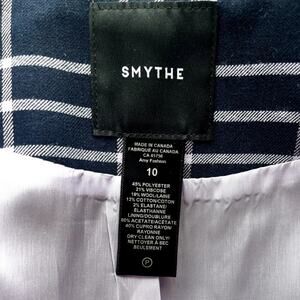 Smythe blazer, one button blazer, plaid blazer, tailored jacket, navy blazer, womens designer blazer size 10