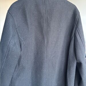 Stay stylish and warm with this classic black double-breasted coat. Perfect for any occasion.