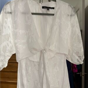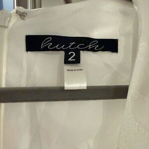 Chic white maxi dress by Hutch. Features a stylish tie front and flowing silhouette. Perfect for elegant occasions.