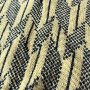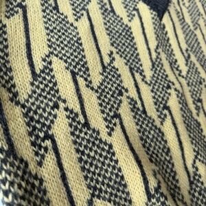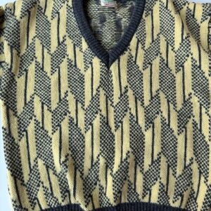 Benetton V neck Vintage Shetland Wool Knit Sweater Med Grey & yellow 80's & 90's