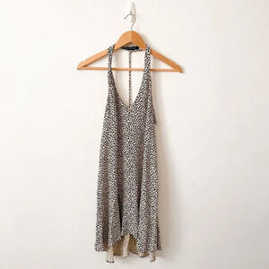 Zara Heart Print Halter Dress Beige Black Size Small
