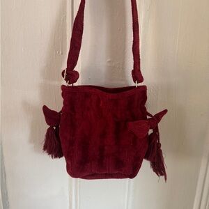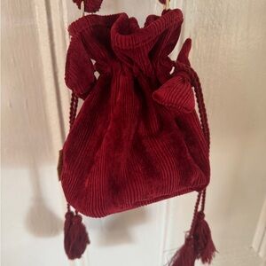 This elegant red drawstring bag is perfect for any occasion. Its rich color adds a touch of sophistication to your outfit. Enjoy the convenience and style it brings to your wardrobe.