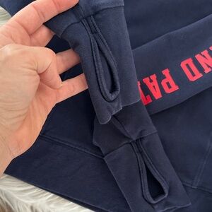 Stylish navy sweatshirt with red New England Patriots logo. Features a quarter-zip design. Perfect for casual wear. Victoria Secret Pink bran! Y2K fashion. Great condition!