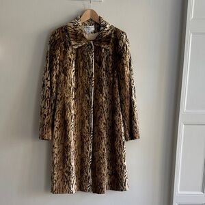 Stylish leopard print coat. Perfect for adding a touch of luxury to any outfit…easy to dress up or wear with jeans and boots. Satin lining.