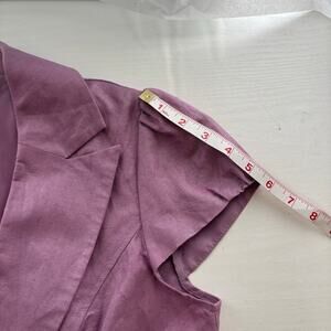 Sandro Sportswear blazer-style top in a soft lilac color. Short puff sleeves, a classic notched lapel, two-button front closure, and functional front pockets. Designed with a gathered peplum hem. Shell is a linen and rayon blend with a polyester lining. Size medium. Please see pictures for measurements and details.